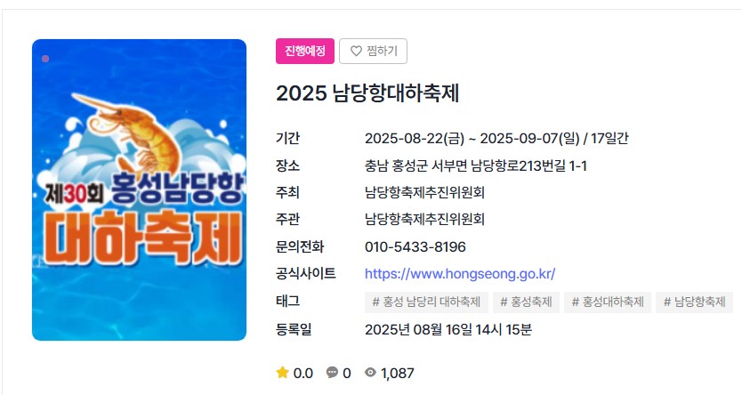 #남당항대하축제 #홍성남당항 #대하축제 #2025남당항대하축제 #가을축제 #충남가볼만한곳 #홍성여행 #대하구이 #대하요리 #가을여행 #축제정보 #축제기간 #축제가격 #축제주차 #축제후기 #대하 #자연산대하 #가을제철음식 #서해안여행 #맨손대하잡기